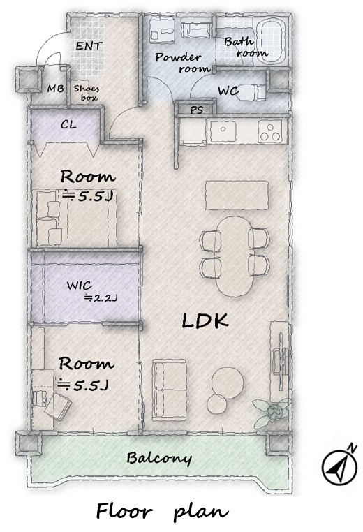 ◆64.64㎡ 2LDK+WIC